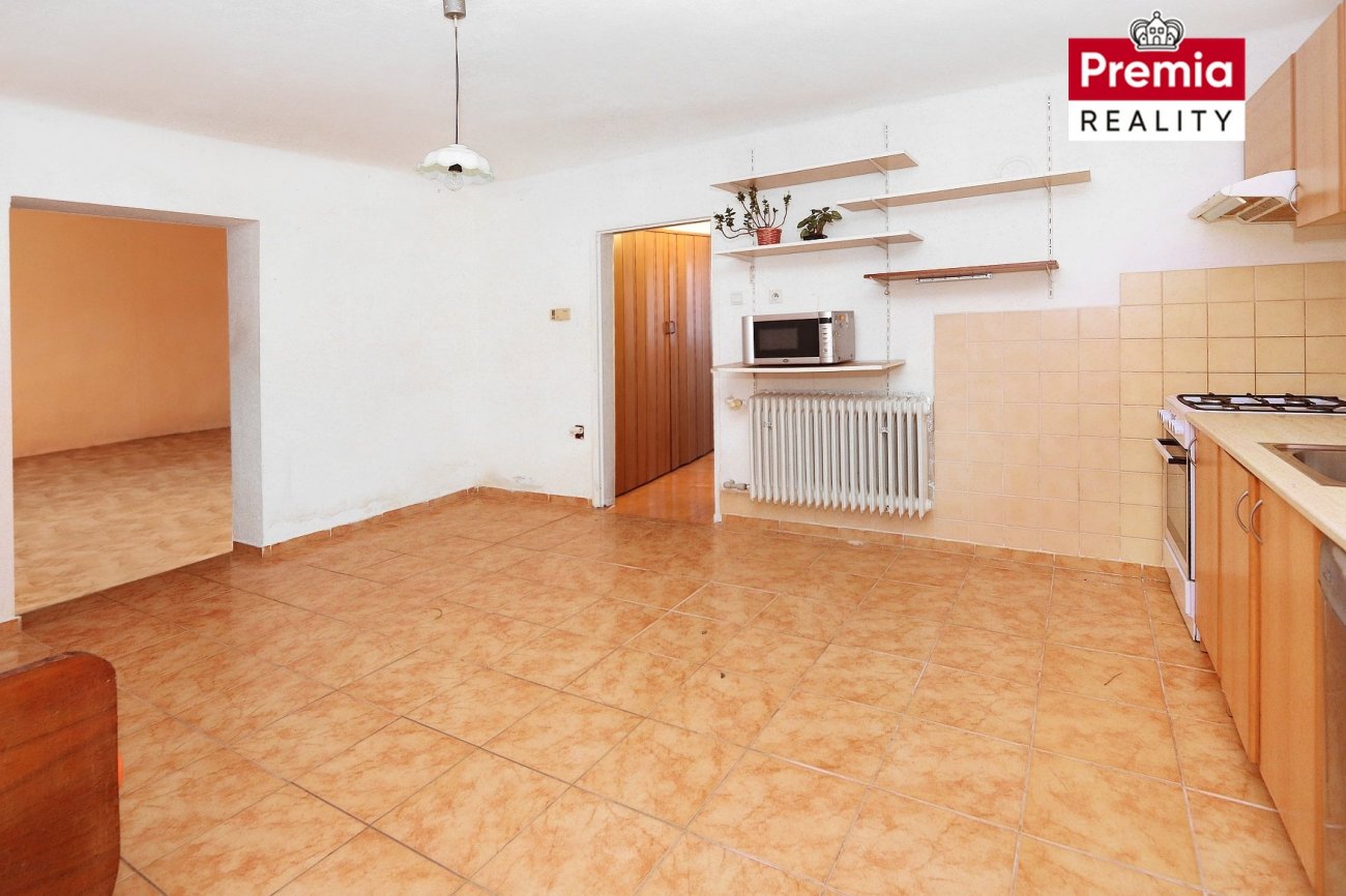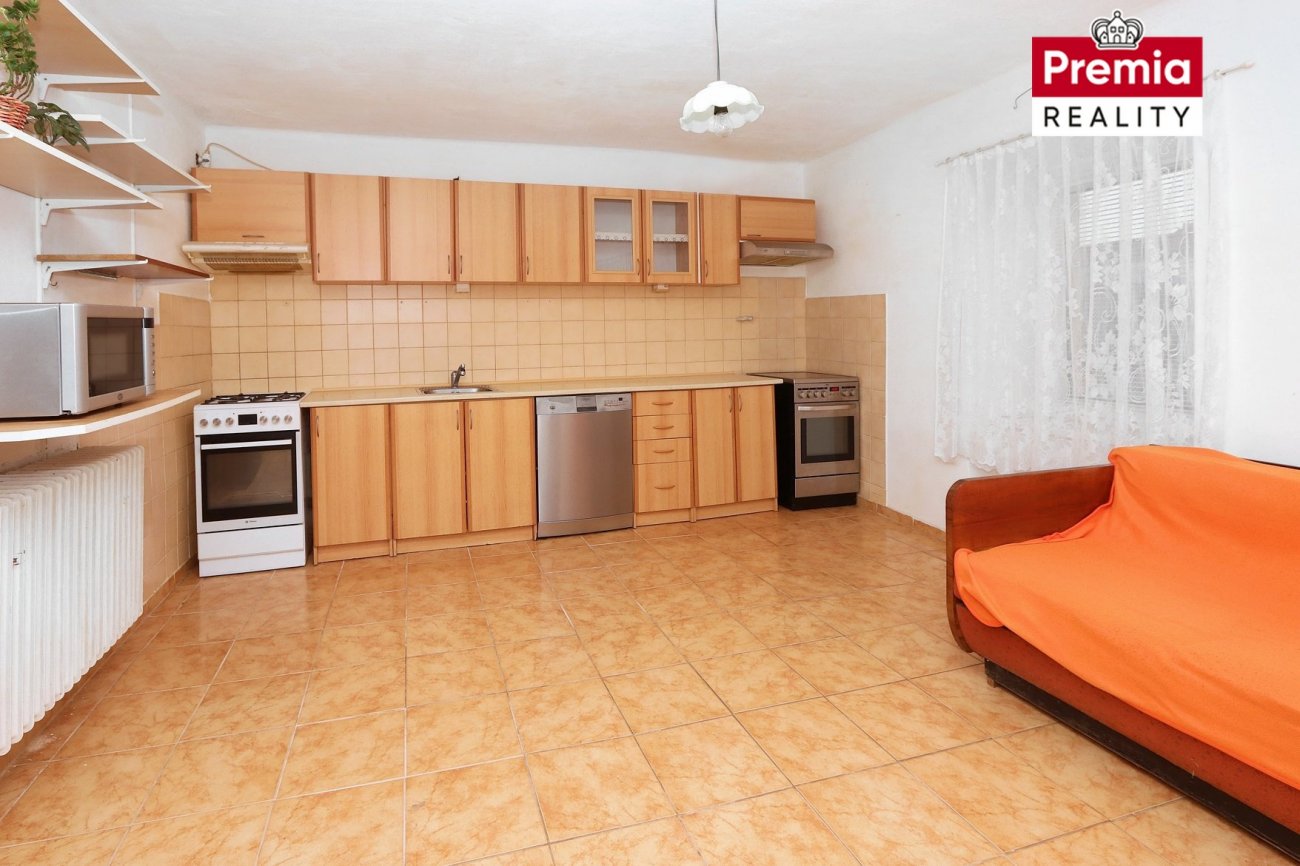 K prodeji nabízíme rodinný dům, garáž a sklep v městysi Dyjákovice, okres Znojmo. Rodinný dům se nachází na pozemku o celkové výměře 739 m², přičemž užitná plocha domu činí přibližně 160 m². Nemovitost je napojena na veškeré inženýrské sítě – elektřinu, vodovod, kanalizaci i plyn. Dům je jednopodlažní a v současné době dispozičně řešen jako 3+kk. Hlavní vstup do domu je situován ze dvora. Obytnou část tvoří prostorná kuchyň s jídelním koutem, obývací pokoj, spíž, koupelna se sprchovým koutem, samostatná toaleta a ložnice, u které je možnost vybudování vestavěné šatny v navazujícím prostoru. Na obytnou část navazují dvě hospodářské místnosti s odděleným vstupem, které lze využít dle vlastních potřeb. Vytápění domu je zajištěno plynovým kotlem. Velkou výhodou je možnost vjezdu automobilem přímo na pozemek. Součástí dvora je garáž, hospodářská budova (ta je ve špatném technickém stavu) a také cihlový klenutý sklep. Městys Dyjákovice se nachází v Jihomoravském kraji a poskytuje klidné prostředí vhodné jak pro trvalé bydlení, tak i pro rekreaci. V obci je k dispozici kompletní občanská vybavenost – mateřská a základní škola, obchody, restaurace i zdravotní služby. Město Znojmo je vzdáleno 23 km, hraniční přechod s Rakouskem pouhých 7 km. Samozřejmostí je také autobusové spojení. Tato nemovitost je ideální volbou pro zájemce, kteří hledají dům s potenciálem a možností rekonstrukce dle vlastních představ. Součástí inzerátu jsou rovněž vizualizace kuchyně a obytných místností, které vám pomohou lépe si představit budoucí podobu bydlení. V případě zájmu mě neváhejte kontaktovat, ráda vám nemovitost osobně představím a zodpovím veškeré dotazy.