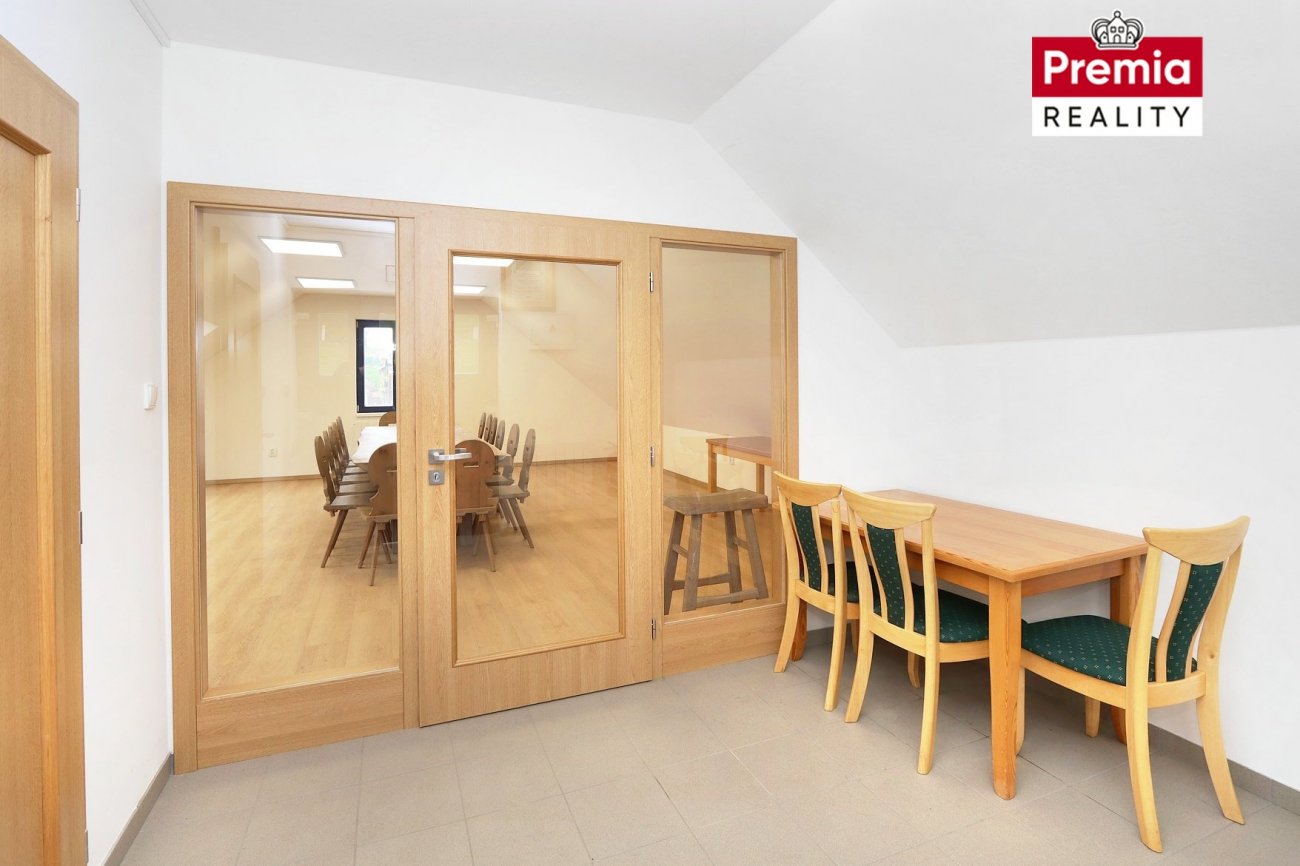 V podkroví se nacházejí dvě prostorné místnosti, které areálu propůjčují reprezentativní charakter. Tento velkorysý a vkusně řešený prostor je ideální pro VIP klientelu, obchodní schůzky, firemní prezentace či společenské akce. Místnosti lze rovněž využít jako komfortní apartmány pro hosty.