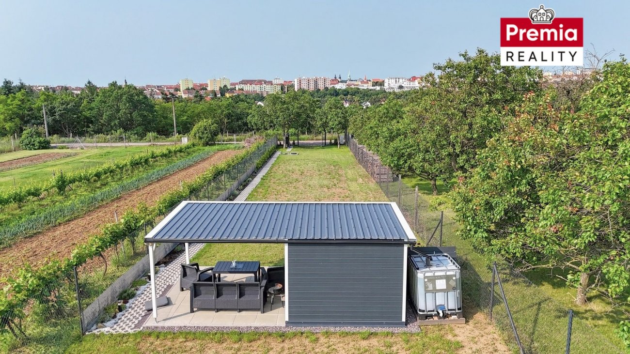 Nabízíme k prodeji velmi pěknou zahradu o výměře 929 m2 vhodnou pro rekreaci případně trvalejší bydlení, která se nachází na krásném a klidném místě v oblasti zahrad s možností výstavby rekreačních domů mezi Znojmem a Kuchařovicemi. Zahrada leží na mírném jižním slunném svahu s krásným výhledem na Znojmo a nabízí naprosté soukromí. Celý pozemek je pečlivě srovnaný a zatravněný s několika ovocnými stromy v zadní části. Je zde nová chatka s venkovním posezením – ideální místo pro relaxaci a odpočinek v příjemném a klidném prostředí. Vlastní studna (vrt 70m) je napojená na kvalitní a výkonné čerpadlo GRUNDSOFT. Plastový kontejner na dešťovou vodu. Elektřina je k dispozici v antoníčku před pozemkem (230V a 400V), a je také zavedena do chatky s terasou. Je to ideální řešení pro připojení karavanu nebo dalších spotřebičů a zařízení. Dále je zde nové oplocení včetně brány a chodník k chatce. V přední části zahrady se nachází sklad na nářadí a v zadní části suchý záchod. Příjezd autem je možný až na pozemek. Dalším bonusem je možnost výstavby domu pro rodinnou rekreaci do 40 m2 zastavěné plochy o jednom nadzemním podlaží s možností podsklepní a využití podkroví, součet zpevněných ploch na pozemku maximálně 12%. Pro více informací nebo zájmu o prohlídku mne kontaktujte.