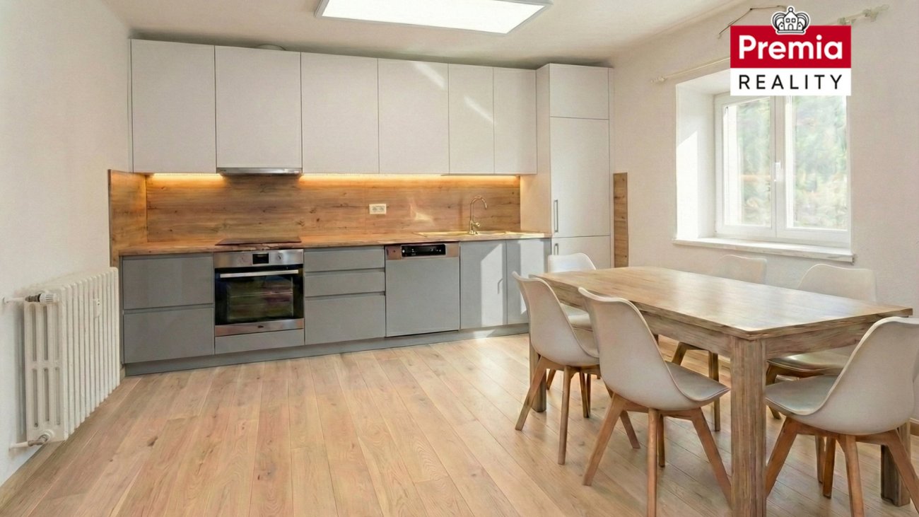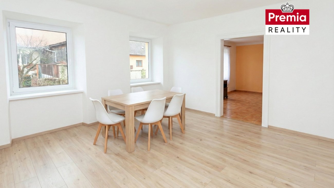 K prodeji nabízíme rodinný dům, garáž a sklep v městysi Dyjákovice, okres Znojmo. Rodinný dům se nachází na pozemku o celkové výměře 739 m², přičemž užitná plocha domu činí přibližně 160 m². Nemovitost je napojena na veškeré inženýrské sítě – elektřinu, vodovod, kanalizaci i plyn. Dům je jednopodlažní a v současné době dispozičně řešen jako 3+kk. Hlavní vstup do domu je situován ze dvora. Obytnou část tvoří prostorná kuchyň s jídelním koutem, obývací pokoj, spíž, koupelna se sprchovým koutem, samostatná toaleta a ložnice, u které je možnost vybudování vestavěné šatny v navazujícím prostoru. Na obytnou část navazují dvě hospodářské místnosti s odděleným vstupem, které lze využít dle vlastních potřeb. Vytápění domu je zajištěno plynovým kotlem. Velkou výhodou je možnost vjezdu automobilem přímo na pozemek. Součástí dvora je garáž, hospodářská budova (ta je ve špatném technickém stavu) a také cihlový klenutý sklep. Městys Dyjákovice se nachází v Jihomoravském kraji a poskytuje klidné prostředí vhodné jak pro trvalé bydlení, tak i pro rekreaci. V obci je k dispozici kompletní občanská vybavenost – mateřská a základní škola, obchody, restaurace i zdravotní služby. Město Znojmo je vzdáleno 23 km, hraniční přechod s Rakouskem pouhých 7 km. Samozřejmostí je také autobusové spojení. Tato nemovitost je ideální volbou pro zájemce, kteří hledají dům s potenciálem a možností rekonstrukce dle vlastních představ. Součástí inzerátu jsou rovněž vizualizace kuchyně a obytných místností, které vám pomohou lépe si představit budoucí podobu bydlení. V případě zájmu mě neváhejte kontaktovat, ráda vám nemovitost osobně představím a zodpovím veškeré dotazy.