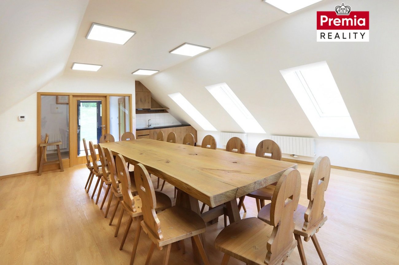 V podkroví se nacházejí dvě prostorné místnosti, které areálu propůjčují reprezentativní charakter. Tento velkorysý a vkusně řešený prostor je ideální pro VIP klientelu, obchodní schůzky, firemní prezentace či společenské akce. Místnosti lze rovněž využít jako komfortní apartmány pro hosty.