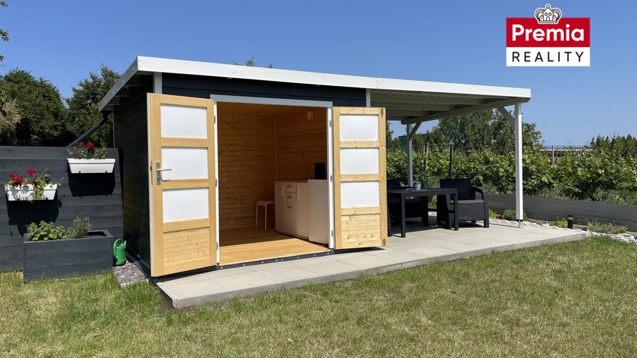 Nabízíme k prodeji velmi pěknou zahradu o výměře 929 m2 vhodnou pro rekreaci případně trvalejší bydlení, která se nachází na krásném a klidném místě v oblasti zahrad s možností výstavby rekreačních domů mezi Znojmem a Kuchařovicemi. Zahrada leží na mírném jižním slunném svahu s krásným výhledem na Znojmo a nabízí naprosté soukromí. Celý pozemek je pečlivě srovnaný a zatravněný s několika ovocnými stromy v zadní části. Je zde nová chatka s venkovním posezením – ideální místo pro relaxaci a odpočinek v příjemném a klidném prostředí. Vlastní studna (vrt 70m) je napojená na kvalitní a výkonné čerpadlo GRUNDSOFT. Plastový kontejner na dešťovou vodu. Elektřina je k dispozici v antoníčku před pozemkem (230V a 400V), a je také zavedena do chatky s terasou. Je to ideální řešení pro připojení karavanu nebo dalších spotřebičů a zařízení. Dále je zde nové oplocení včetně brány a chodník k chatce. V přední části zahrady se nachází sklad na nářadí a v zadní části suchý záchod. Příjezd autem je možný až na pozemek. Dalším bonusem je možnost výstavby domu pro rodinnou rekreaci do 40 m2 zastavěné plochy o jednom nadzemním podlaží s možností podsklepní a využití podkroví, součet zpevněných ploch na pozemku maximálně 12%. Pro více informací nebo zájmu o prohlídku mne kontaktujte.